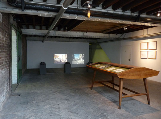Oscillating between mere activation and loose interpretation of Levé’s ideas, the show aimed to challenge over-dependence on intellectual individuality in favour of a non-territorial and dialogic approach. A Way to a Place was presented concurrently at –able Kulturverein in Berlin and at the James Taylor Gallery in London. The exhibitions responded to the physical specificities of each space and the works adopted different material forms in each show. Each presentation of the project involved a collaboration with other artists. Sabine Jamme presented a performance during the course of the exhibition at –able. The exhibition at the James Taylor Gallery was co-curated by Julia Crabtree and William Evans.