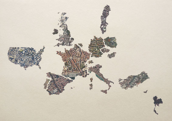 The exhibition brought together a series of map drawings which played with the conventional representation of space as a way to reflect on the ever changing and disparate nature of people’s global perception and sense of place.